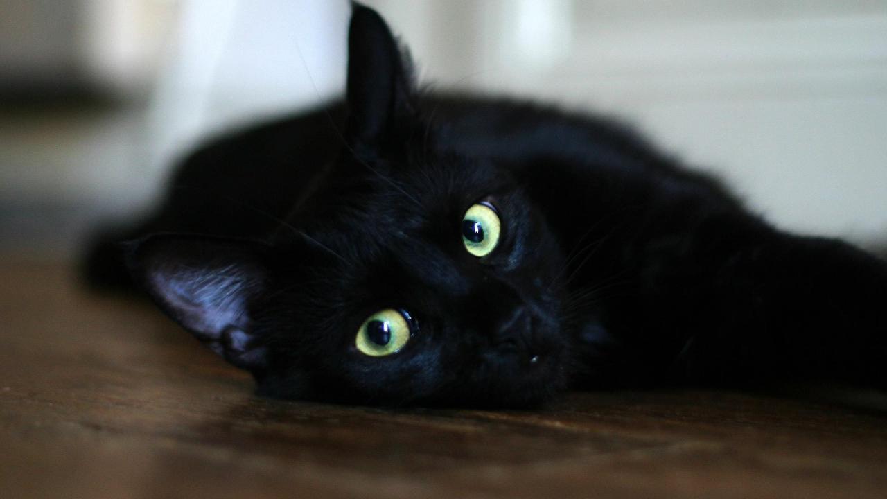 Wallpaper Black cat resting on the floor