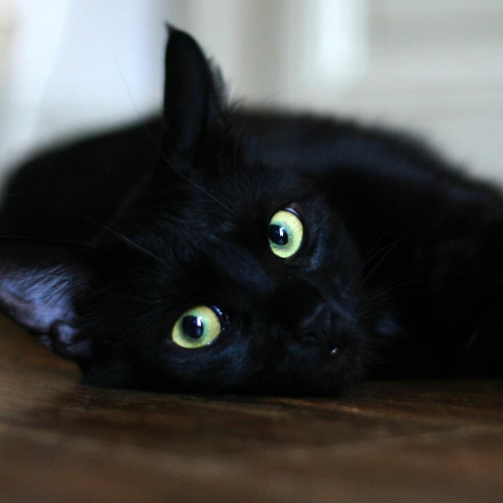 Wallpaper Black cat resting on the floor
