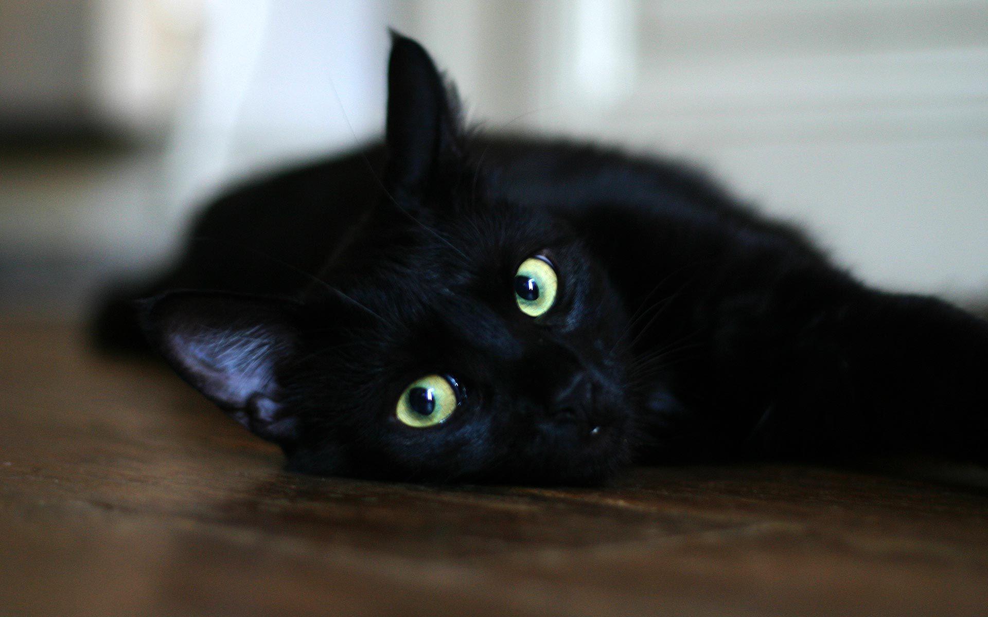 Wallpaper Black cat resting on the floor