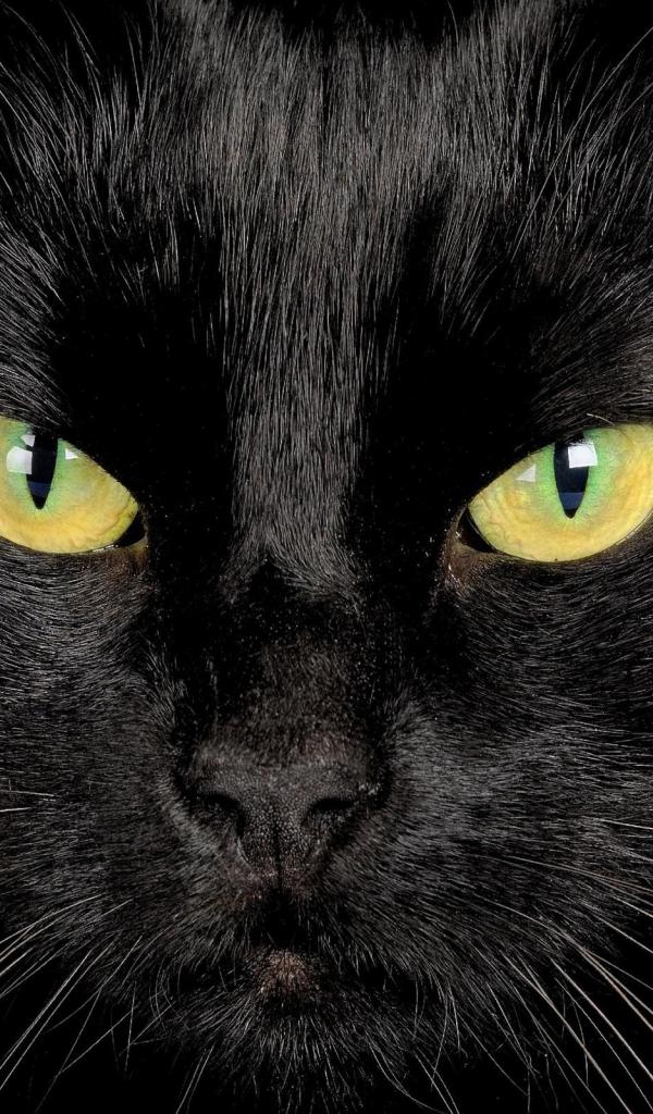 Wallpaper Serious black cat closeup