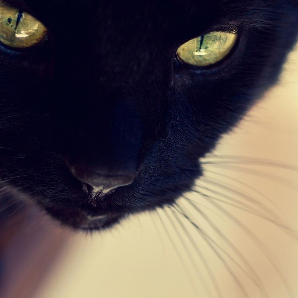 Wallpaper Mustachioed black cat closeup