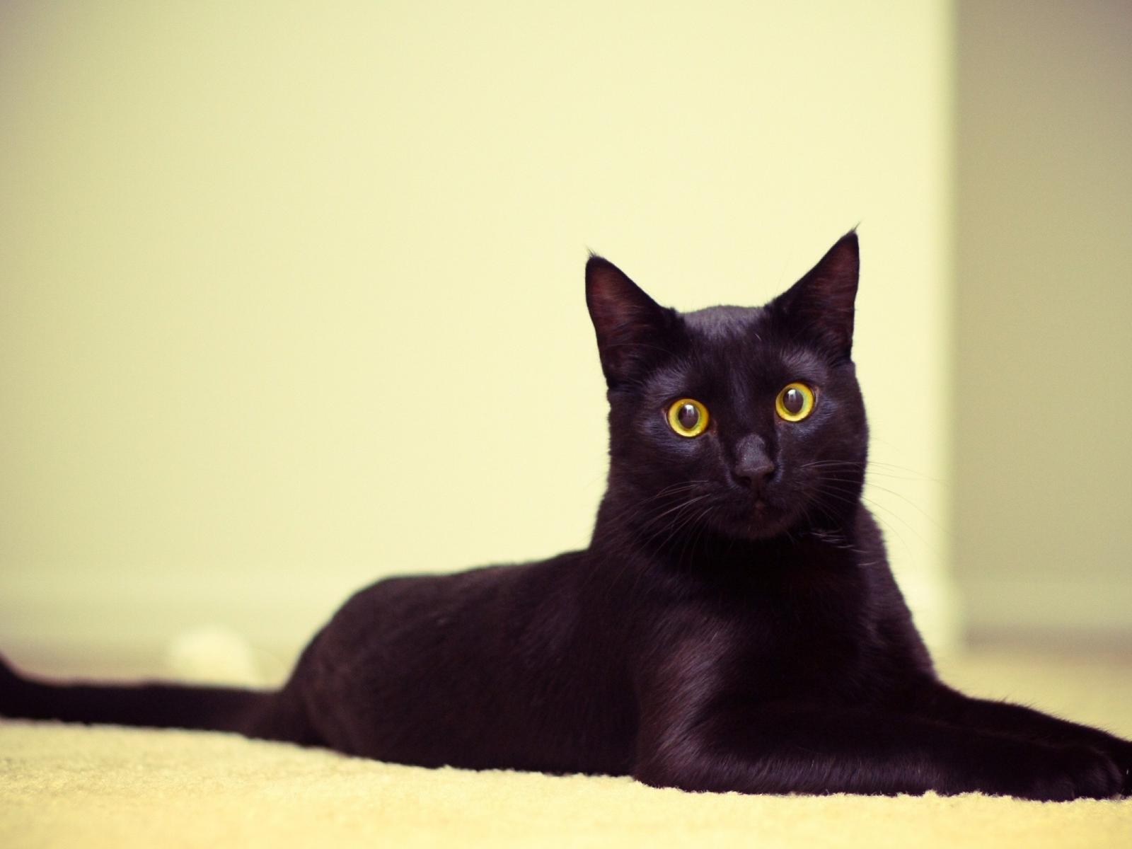 Wallpaper Black cat lying on the mat