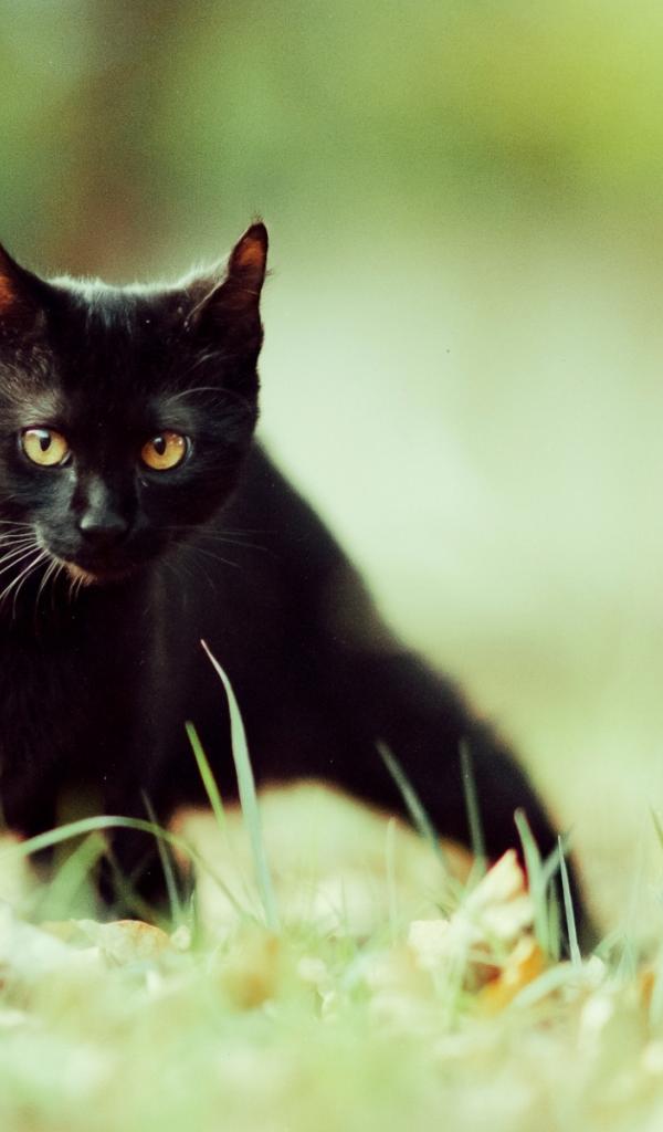 Wallpaper A small black cat slinks