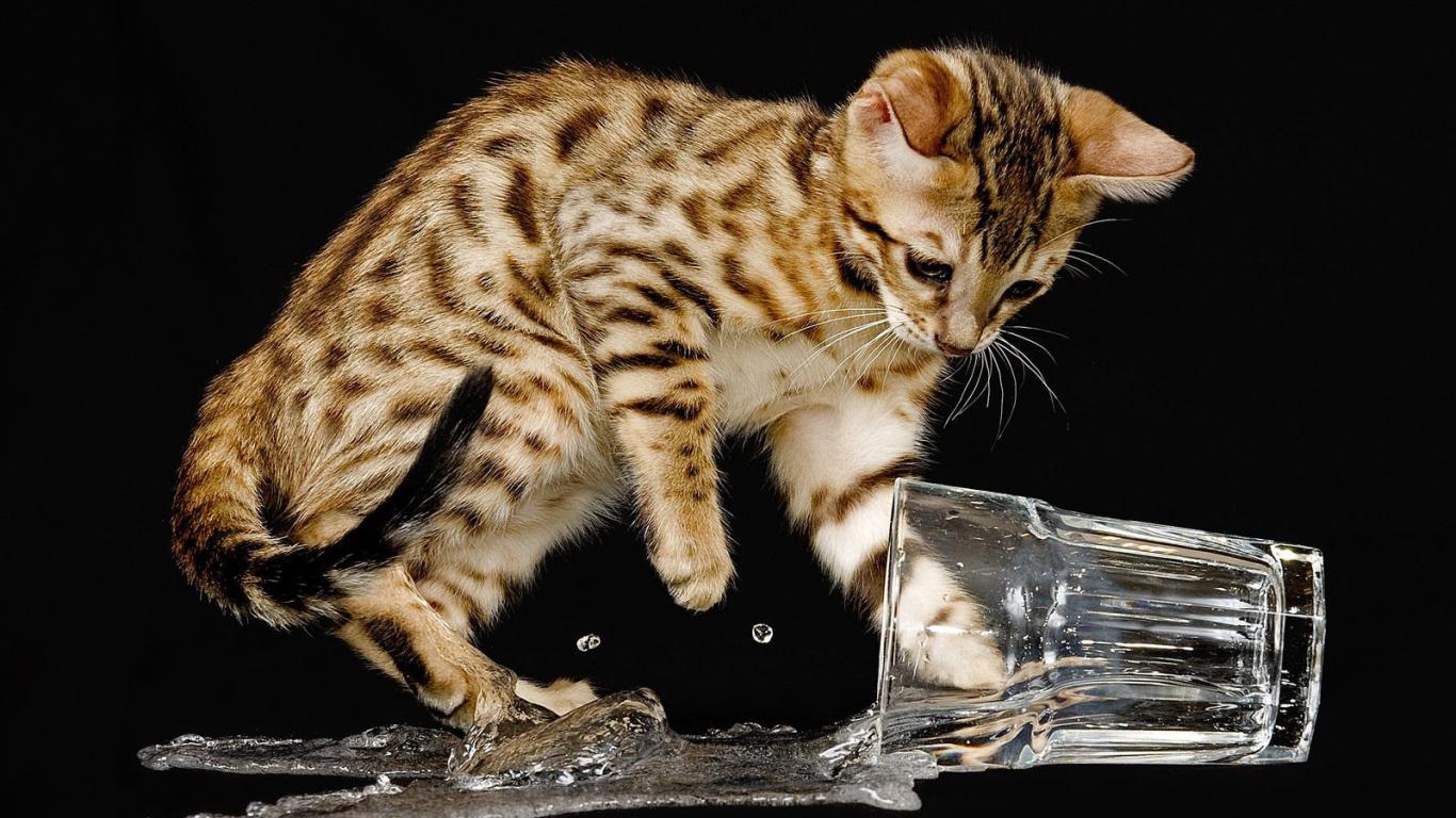 » Wallpaper Bengal cat spilled water