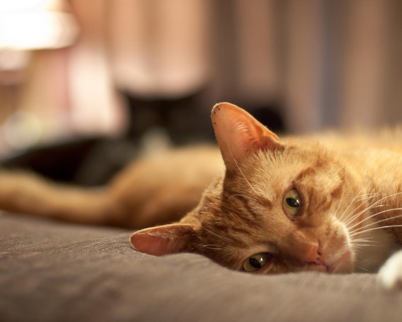 Wallpaper Red Cat relaxes on a bed