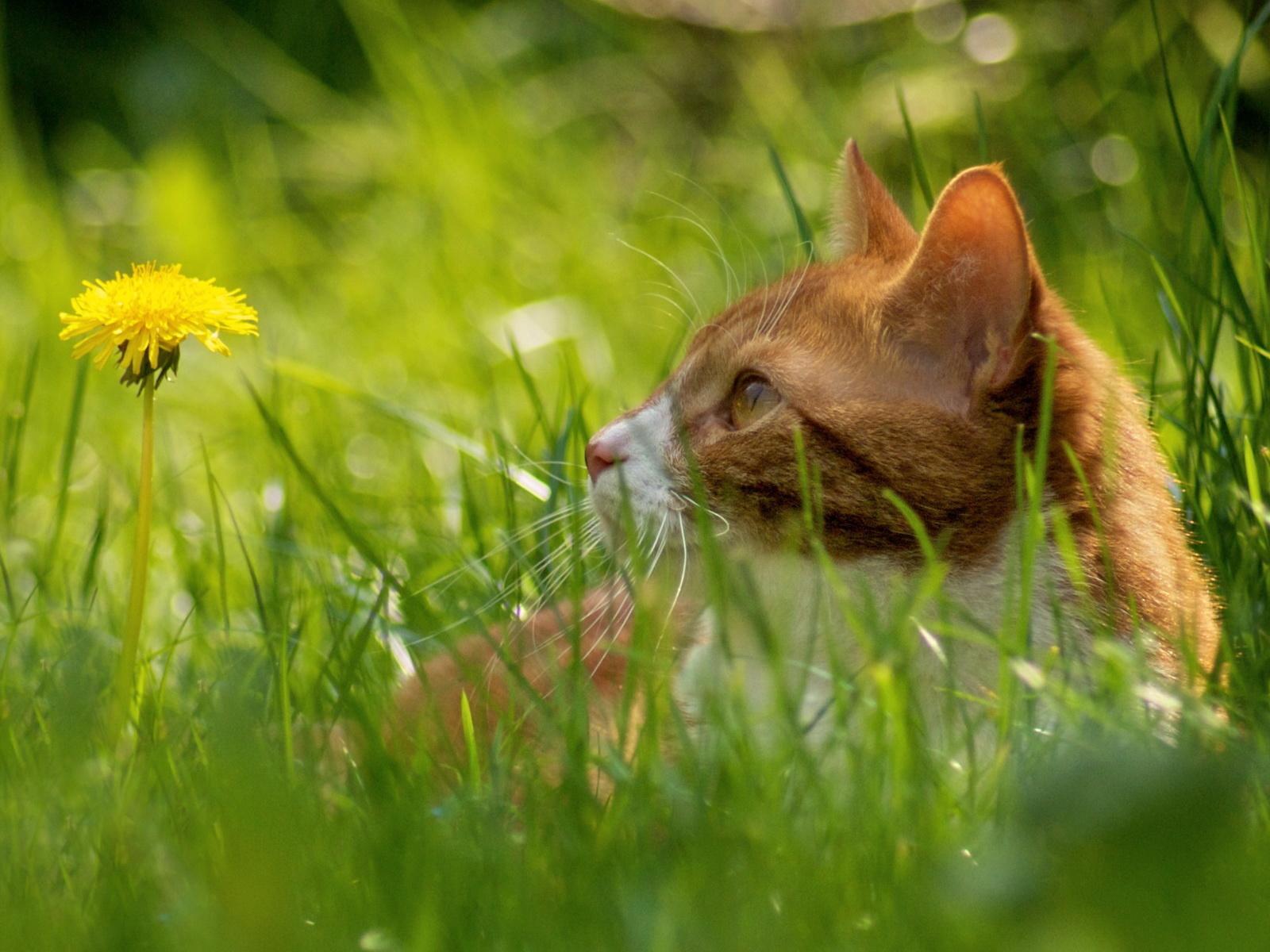 Wallpaper Red Cat in the grass