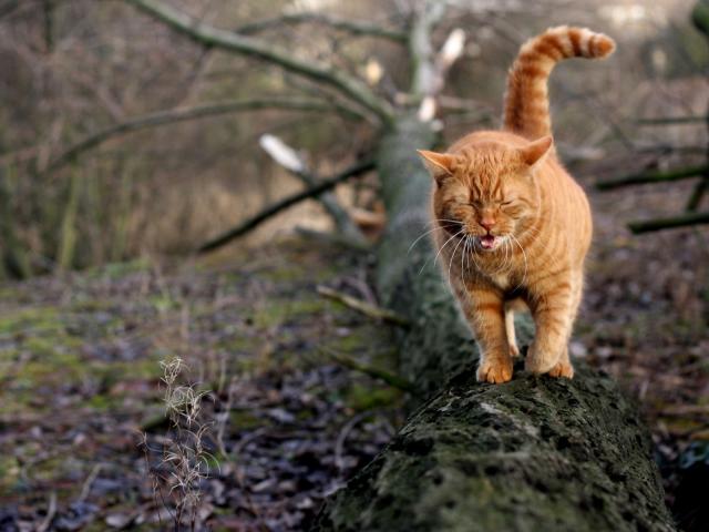 Wallpaper Sad red cat is on a tree