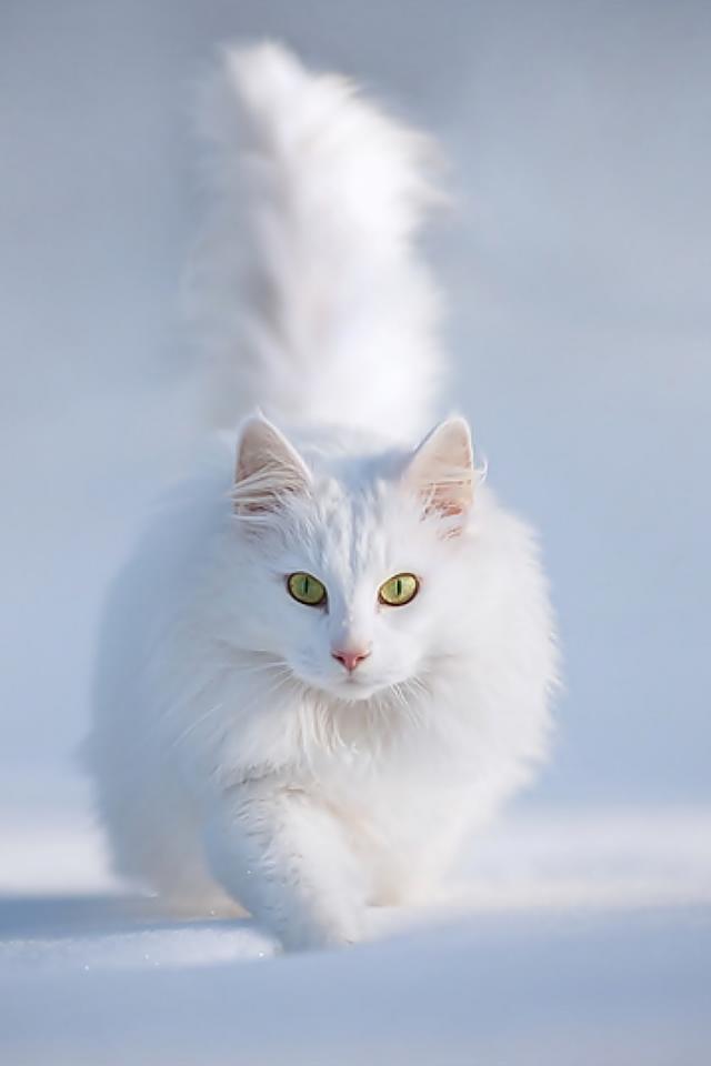 Wallpaper White cat running in the snow