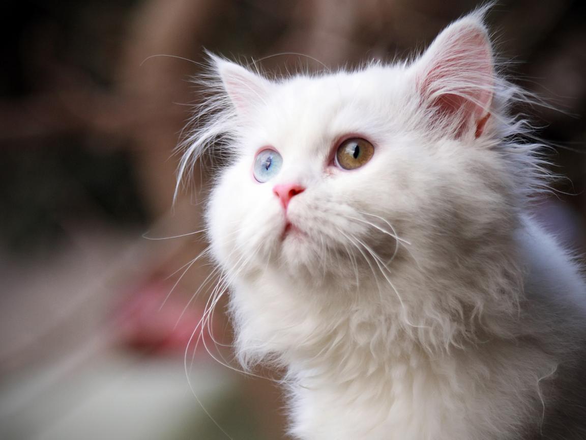 Wallpaper Cute white cat with different eyes