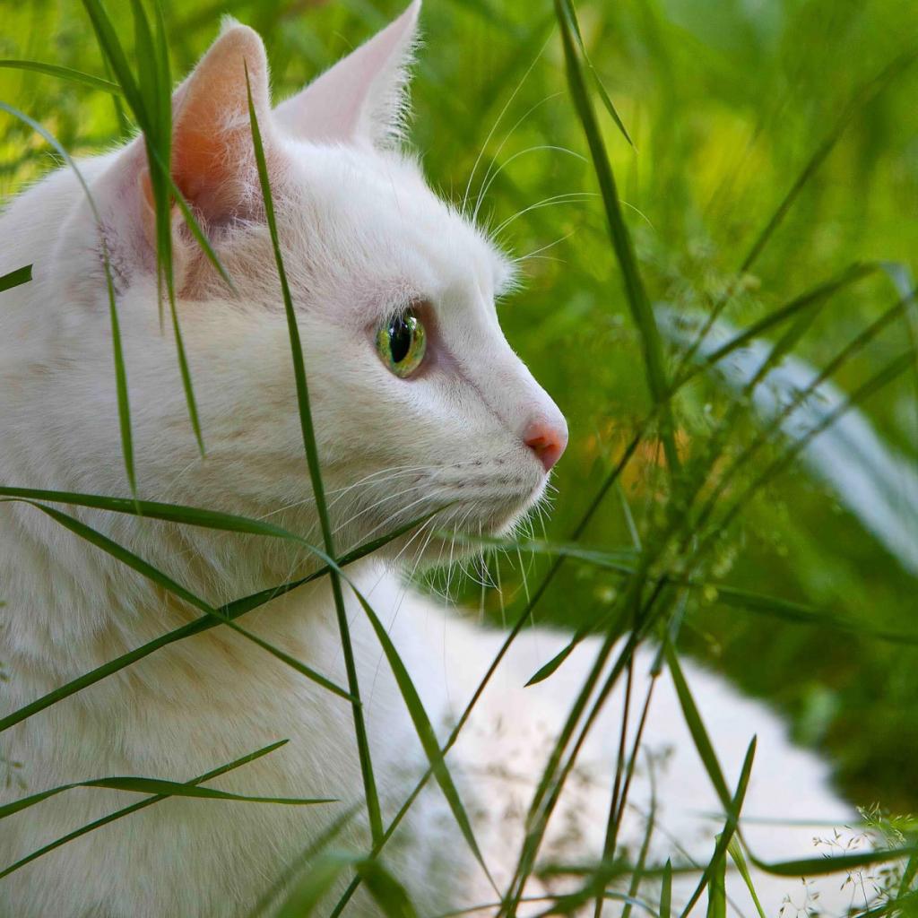 Wallpaper White cat in the grass