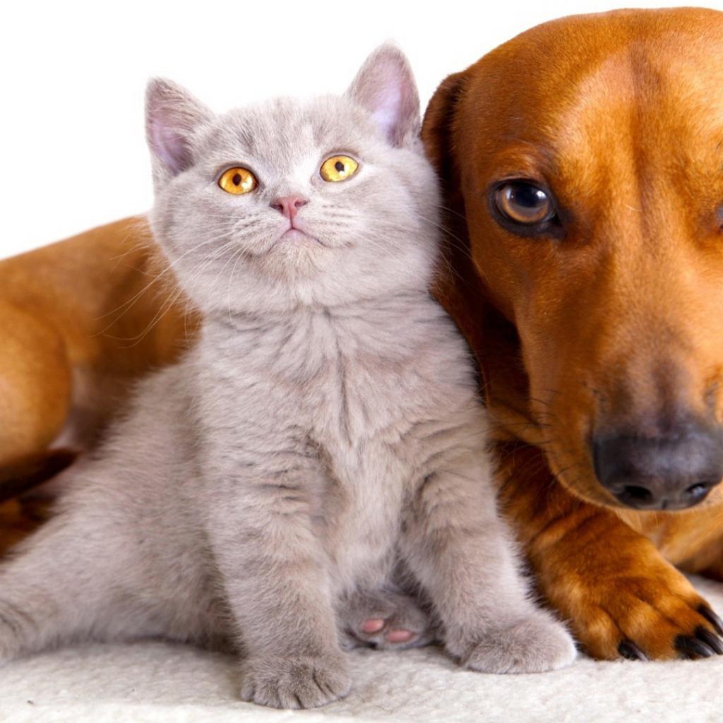 Wallpaper Small gray cat and dog