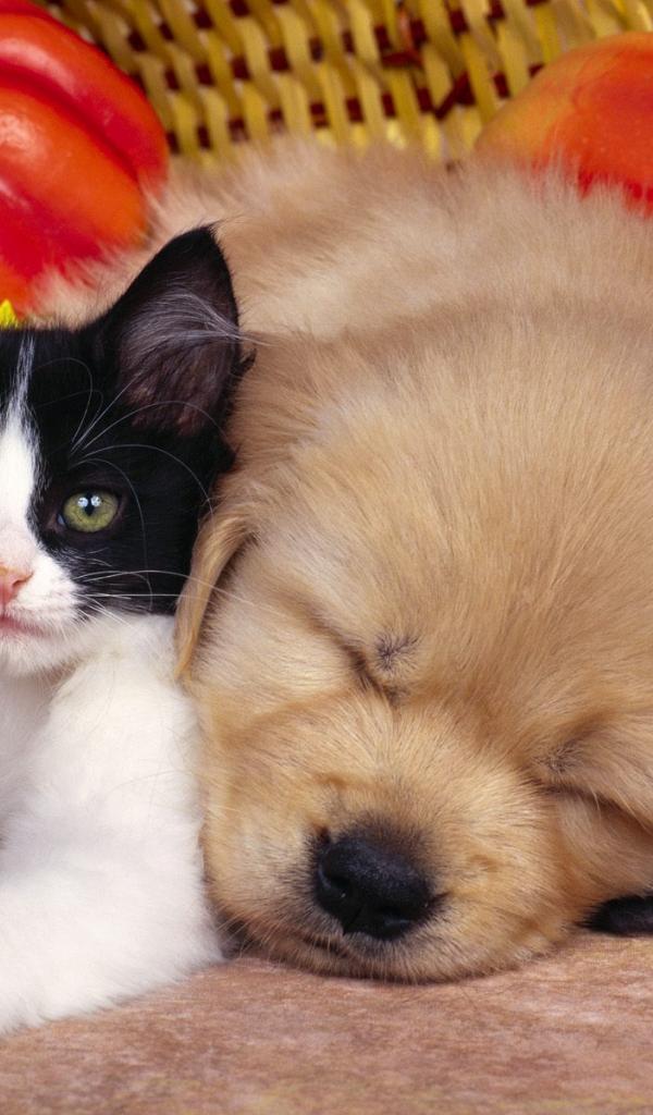 Wallpaper Cat, dog and vegetables