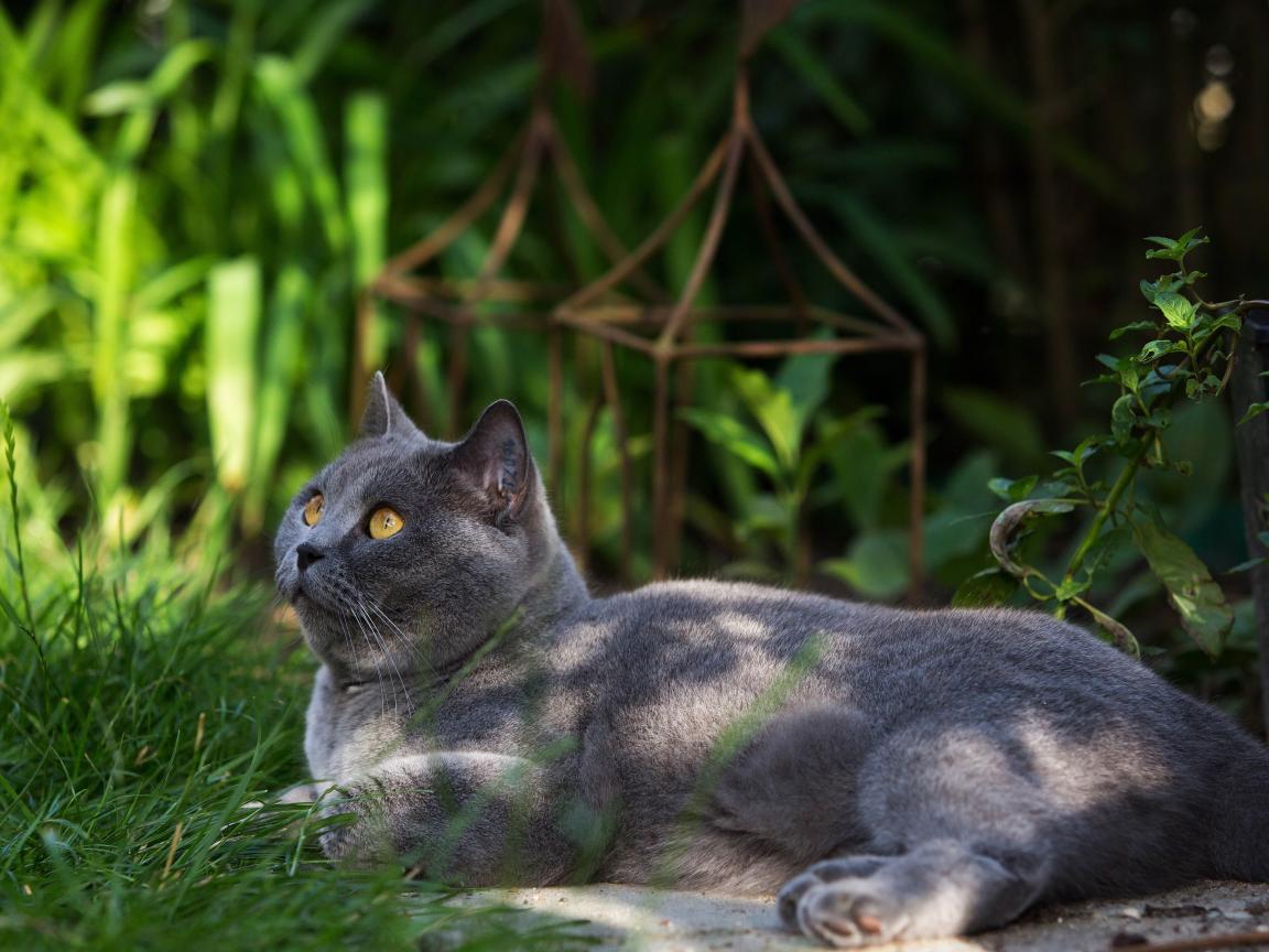 Wallpaper Beautiful British cat on grass