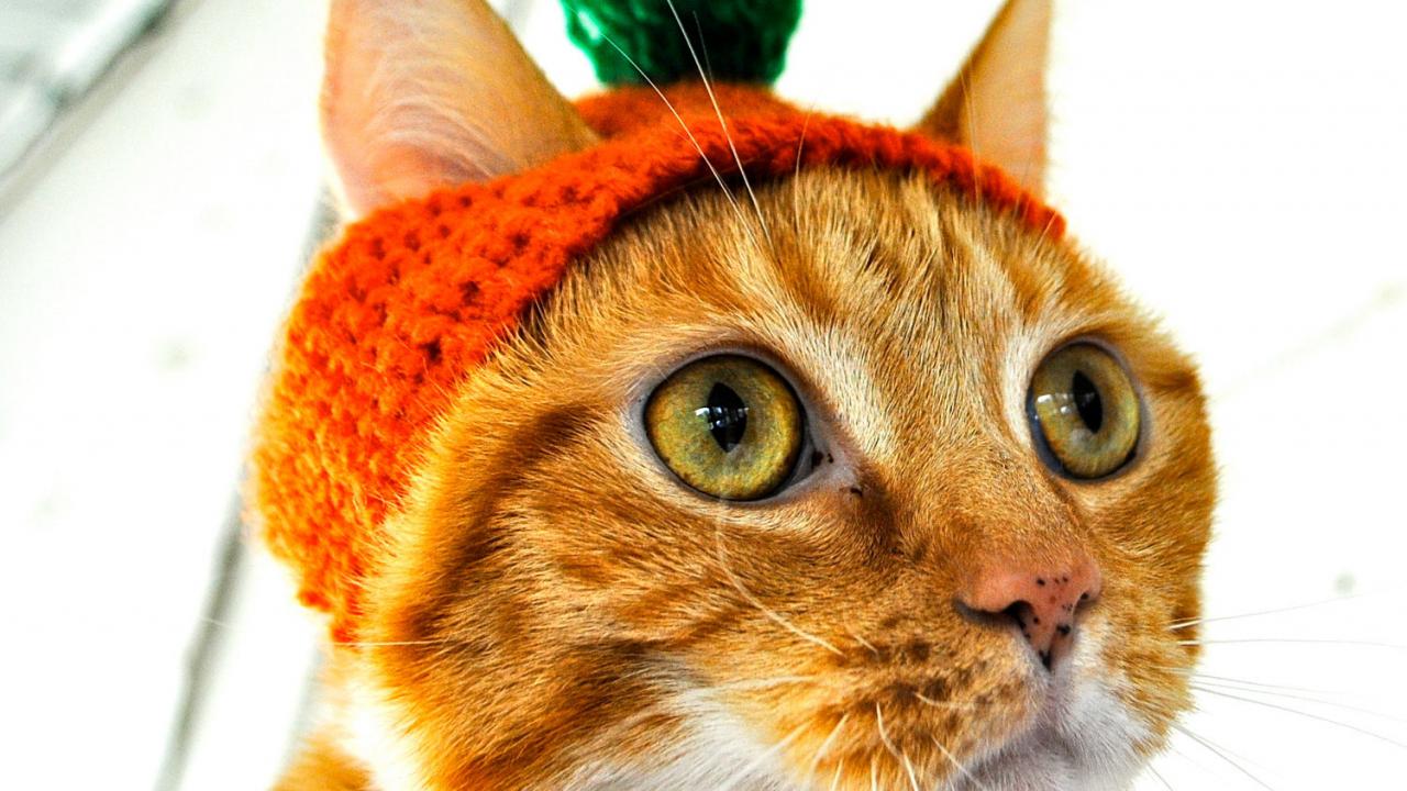 Wallpaper Red Cat in the hat Carrot