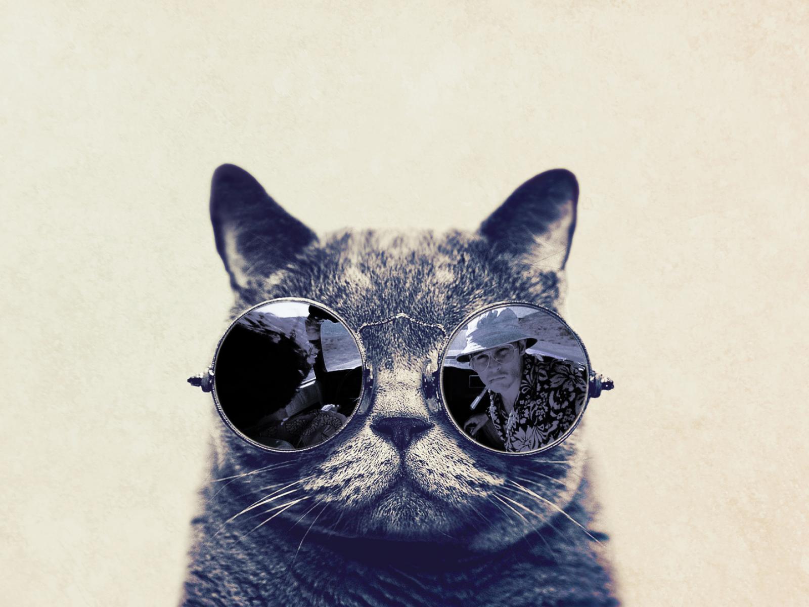 Wallpaper Cat with glasses Fear in Vegas