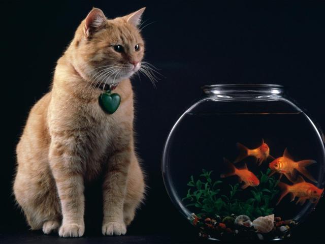 Wallpaper Cat looks at the fish