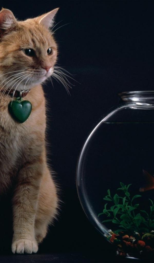 Wallpaper Cat looks at the fish