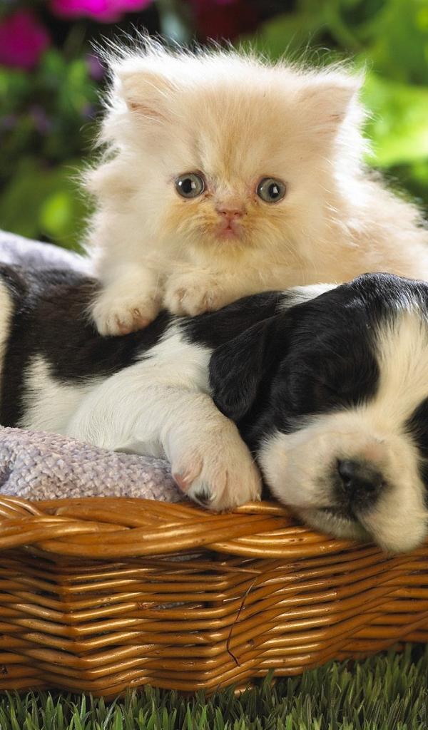 Wallpaper Puppy and kitten
