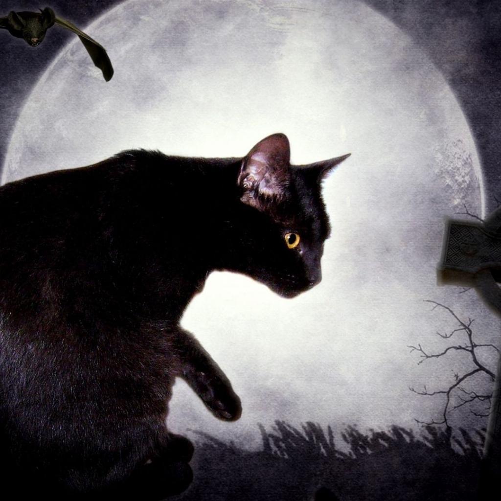 Wallpaper Black cat and the moon
