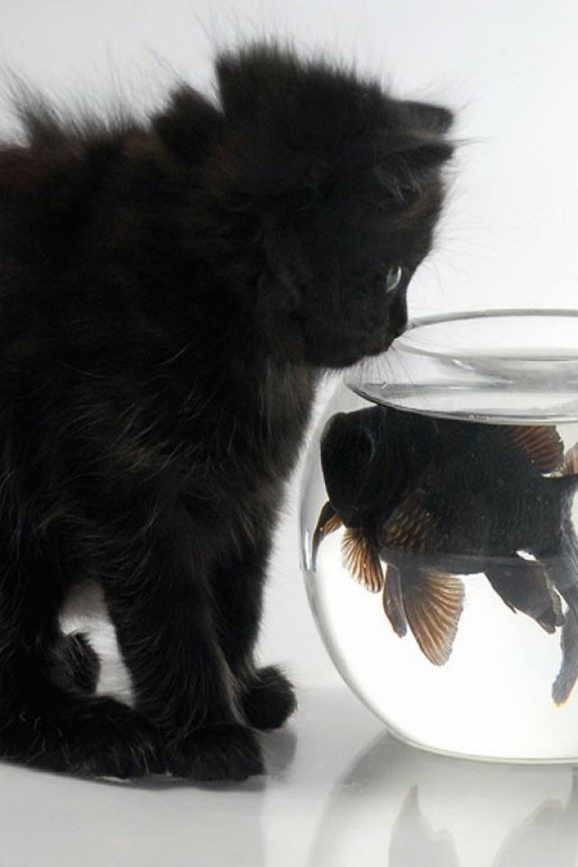 Wallpaper Kitten and fish