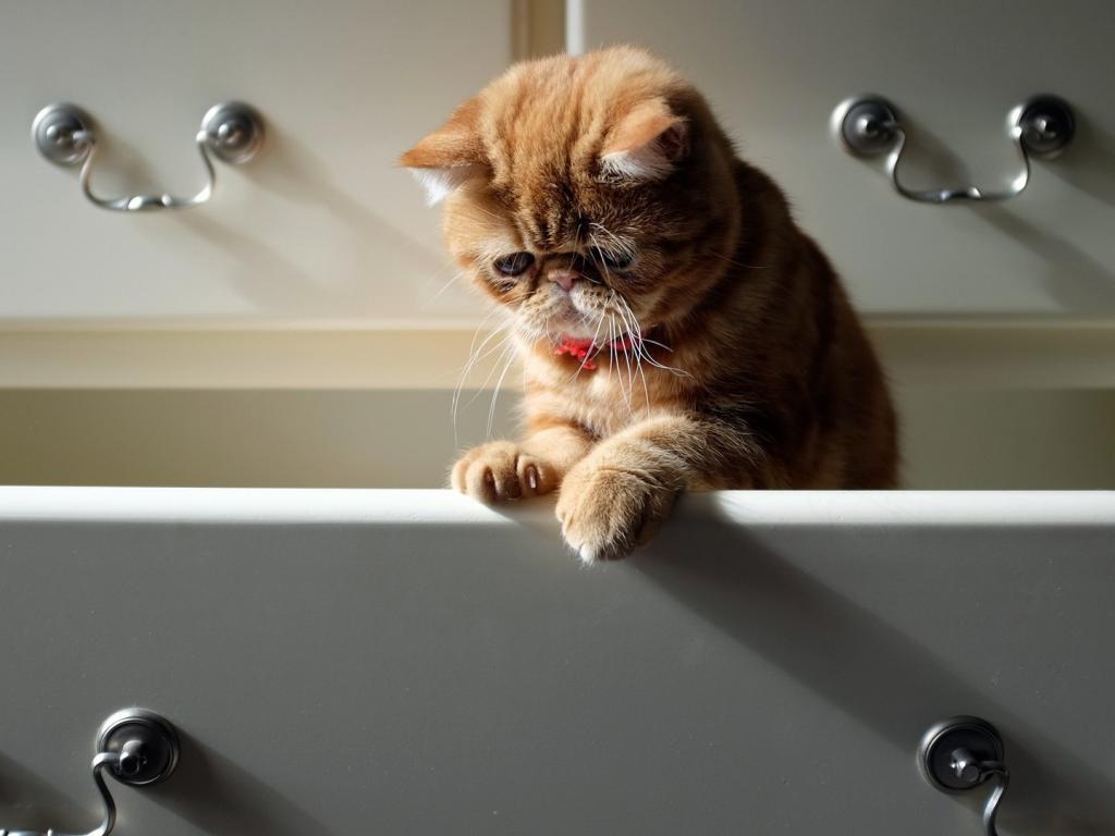 Wallpaper Cat in the Bureau drawer