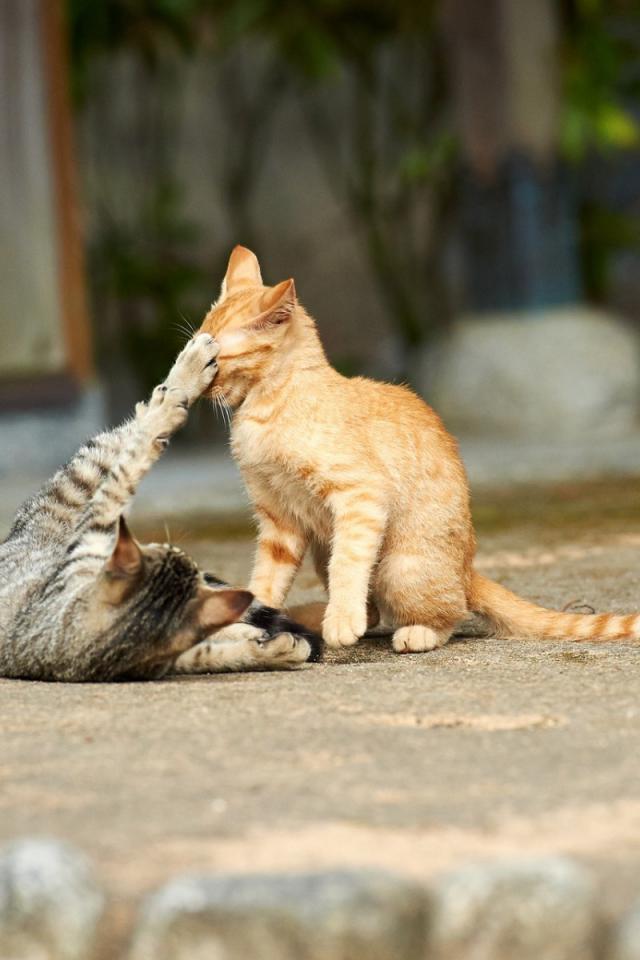 Wallpaper Cats play on the street