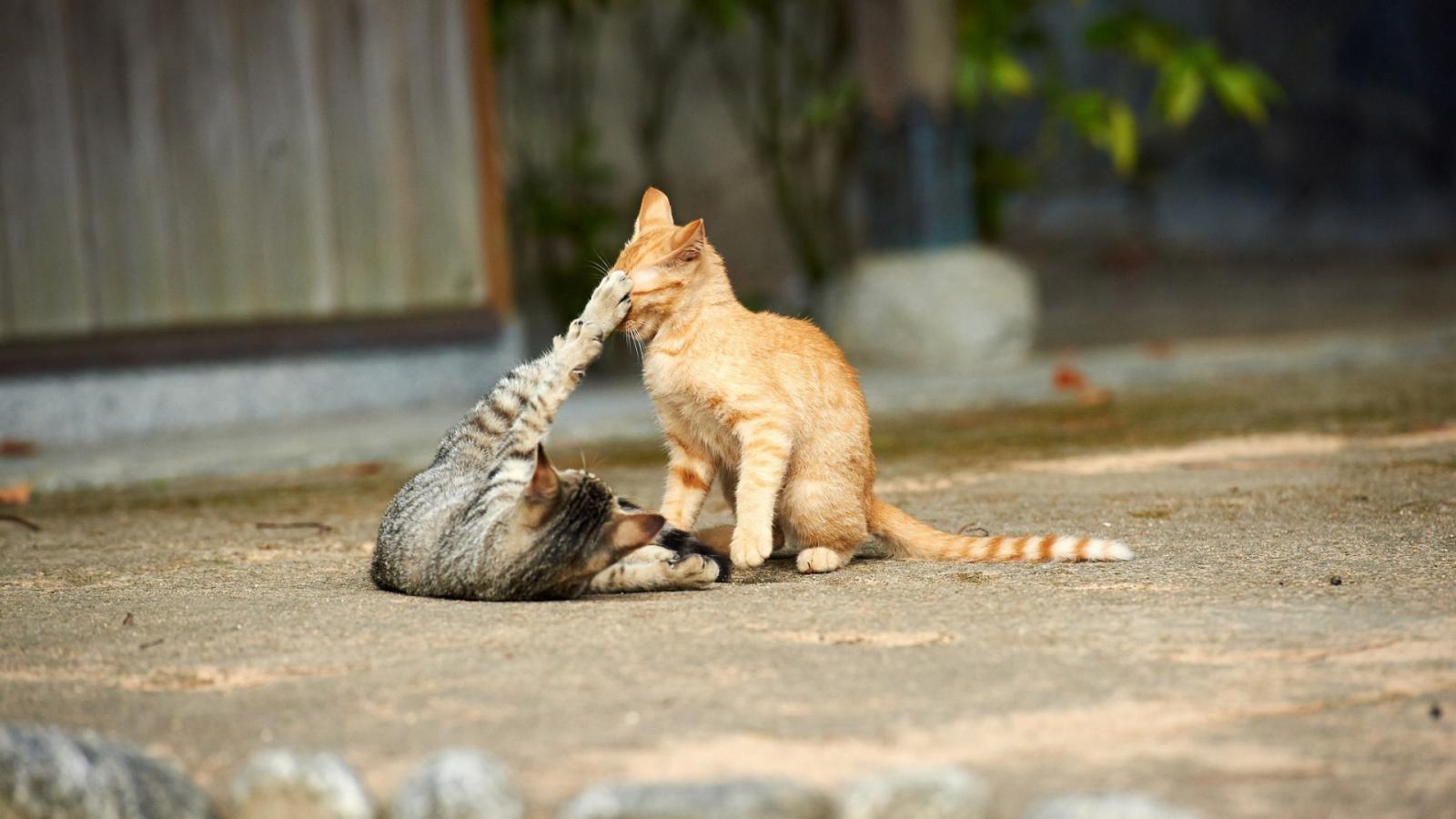 Wallpaper Cats play on the street