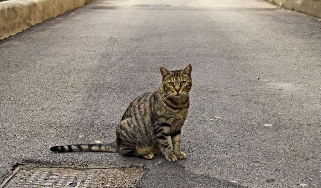 Wallpaper Tabby cat on the road