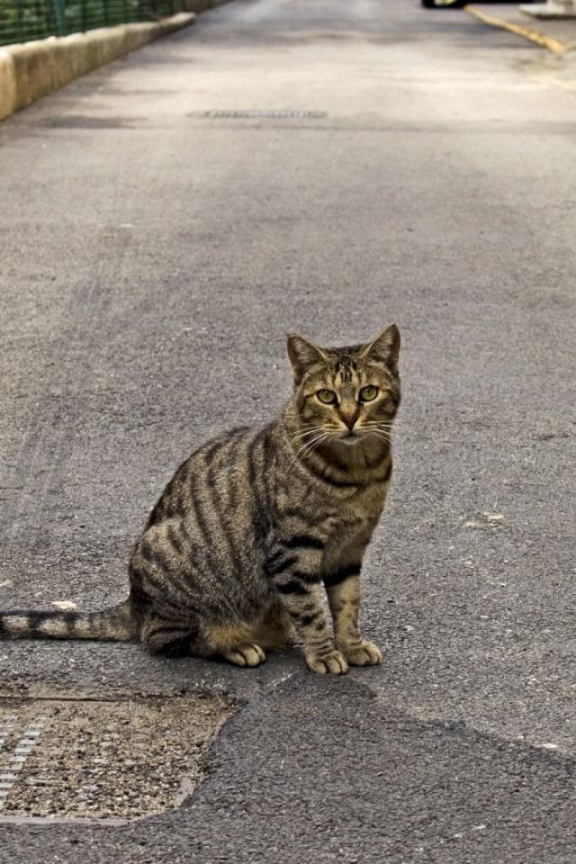 » Wallpaper Tabby cat on the road