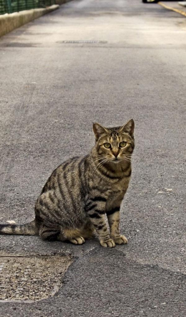 Wallpaper Tabby cat on the road
