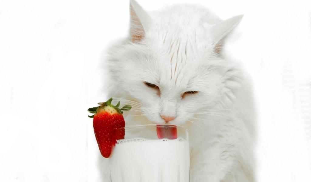 Wallpaper White cat and milk