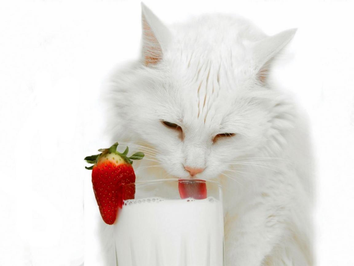 Wallpaper White cat and milk