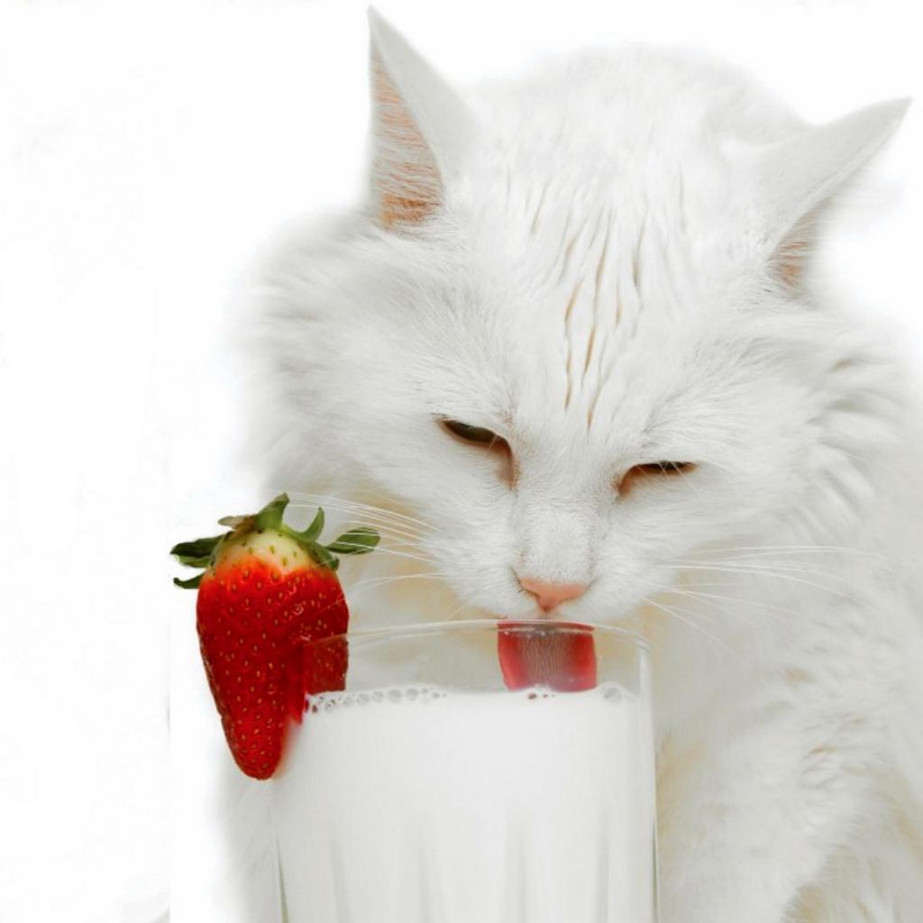 Wallpaper White cat and milk