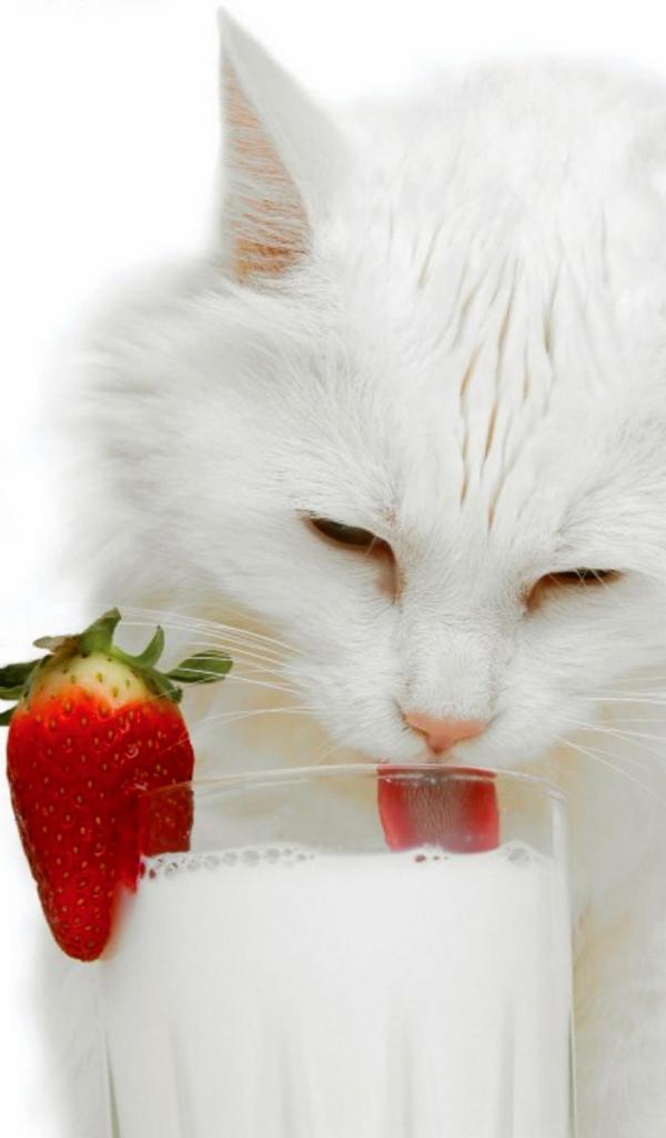 Wallpaper White cat and milk