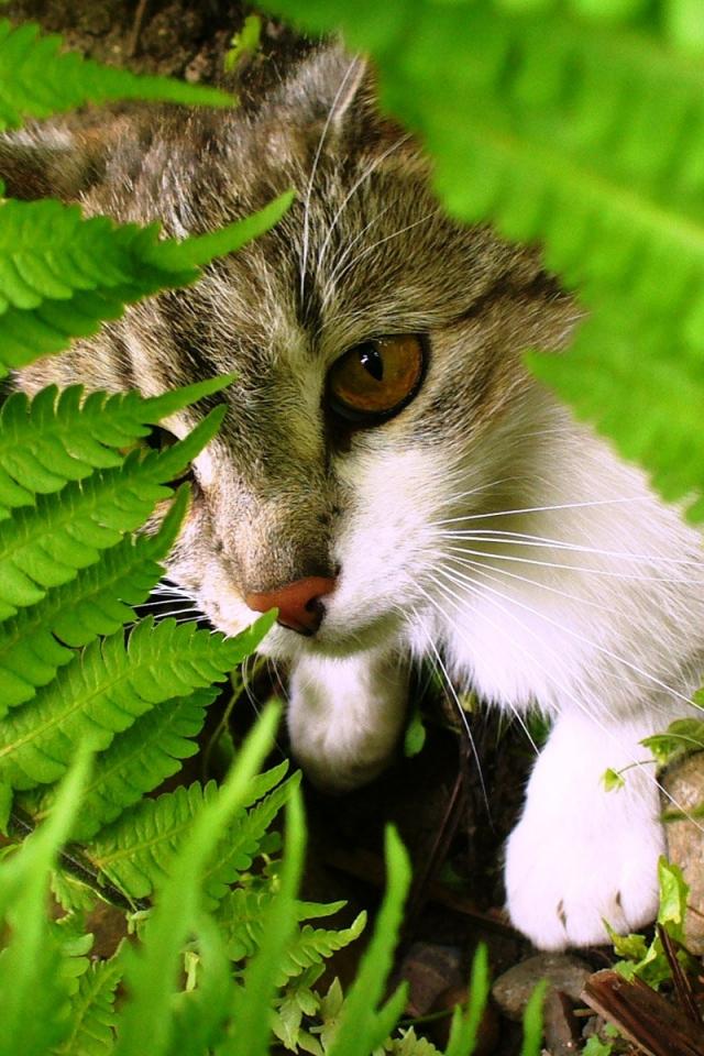 Wallpaper Cat among the leaves