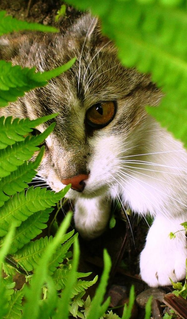 Wallpaper Cat among the leaves