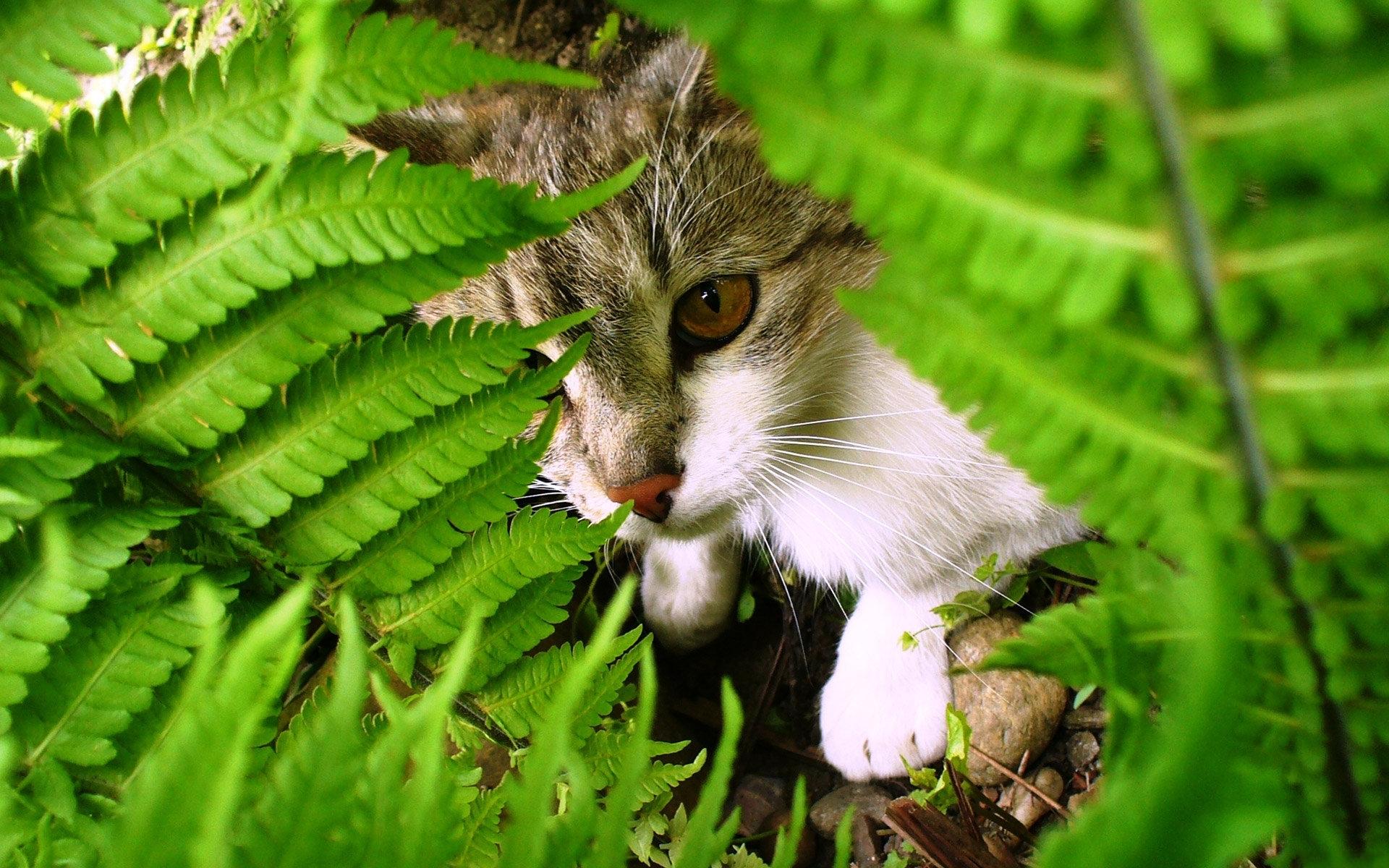 Wallpaper Cat among the leaves