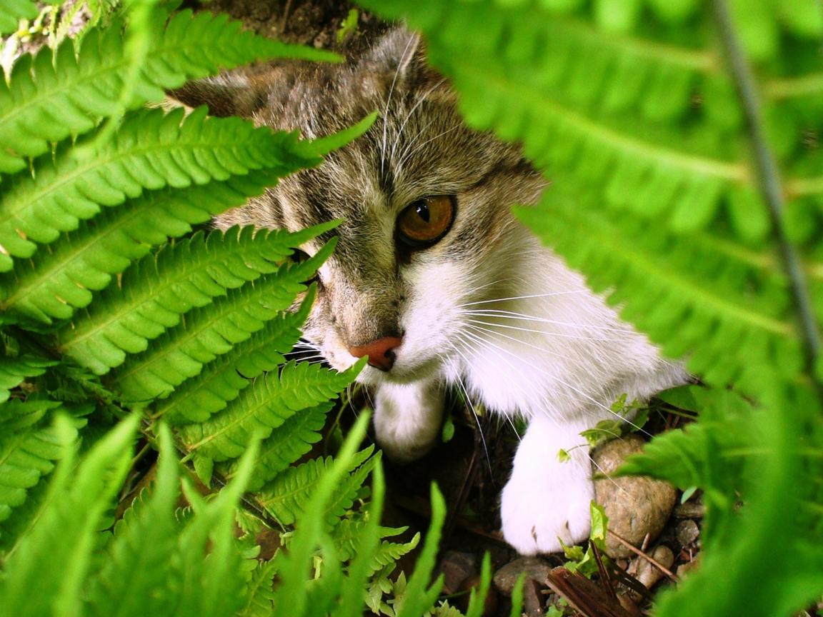 Wallpaper Cat among the leaves