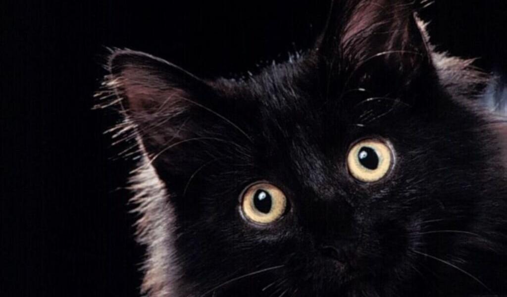 Wallpaper Fluffy black cat on a black background
