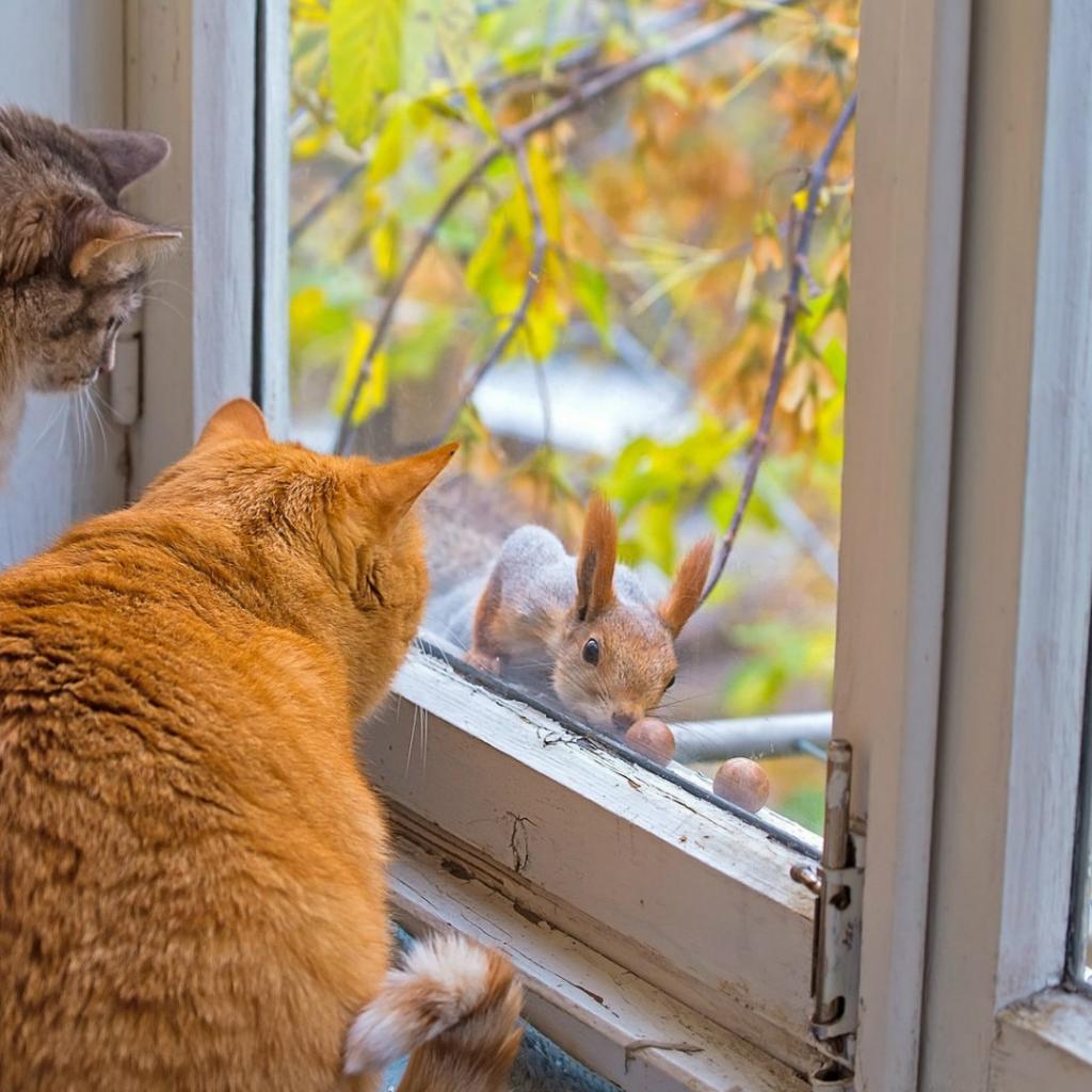 Wallpaper Cats get acquainted with a squirrel