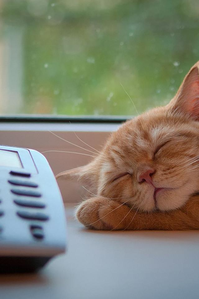 Wallpaper Red cat sleeping on the phone