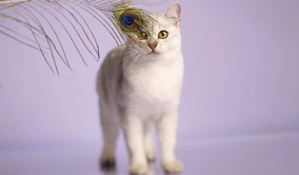 Wallpaper Burmilla cat and a peacock feather