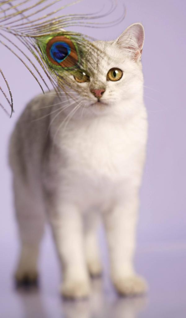 Wallpaper Burmilla cat and a peacock feather