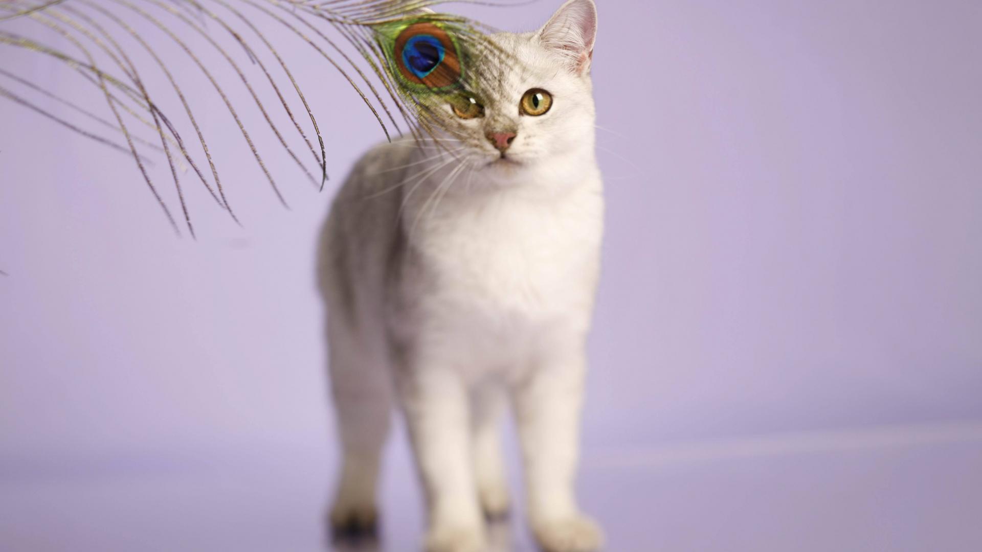 Wallpaper Burmilla cat and a peacock feather