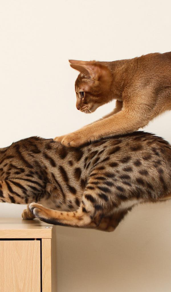 » Wallpaper Abyssinian cat playing with Bengali