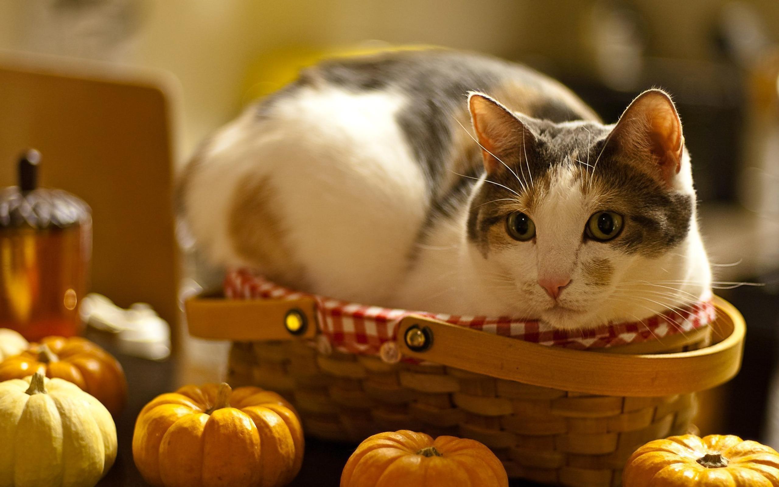Wallpaper American haired cat in a basket