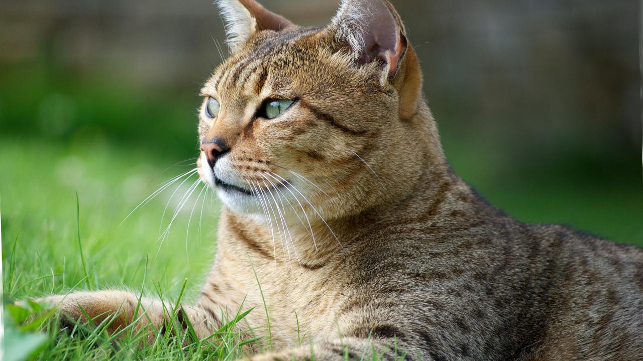 Wallpaper Egyptian Mau cat on grass