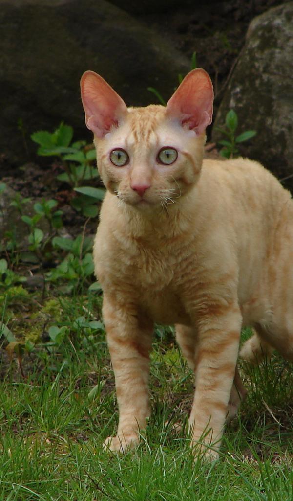 Wallpaper Red Cat Cornish Rex on the grass