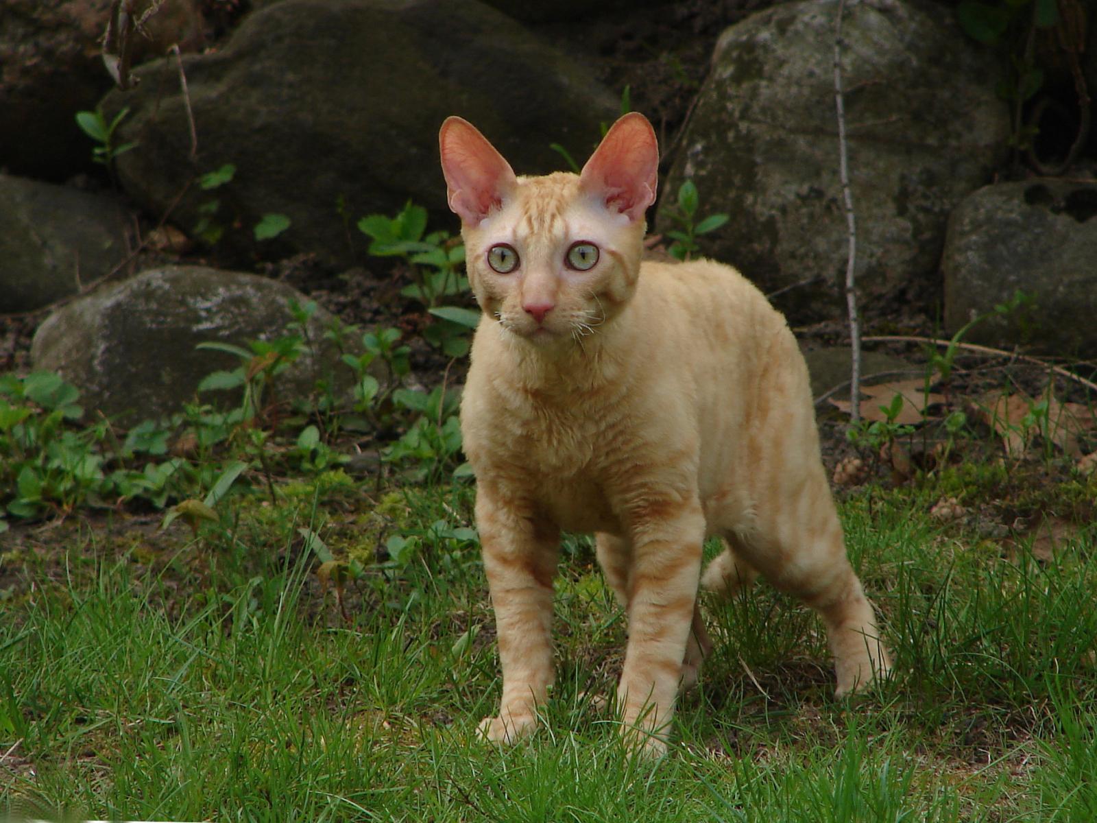 Wallpaper Red Cat Cornish Rex on the grass