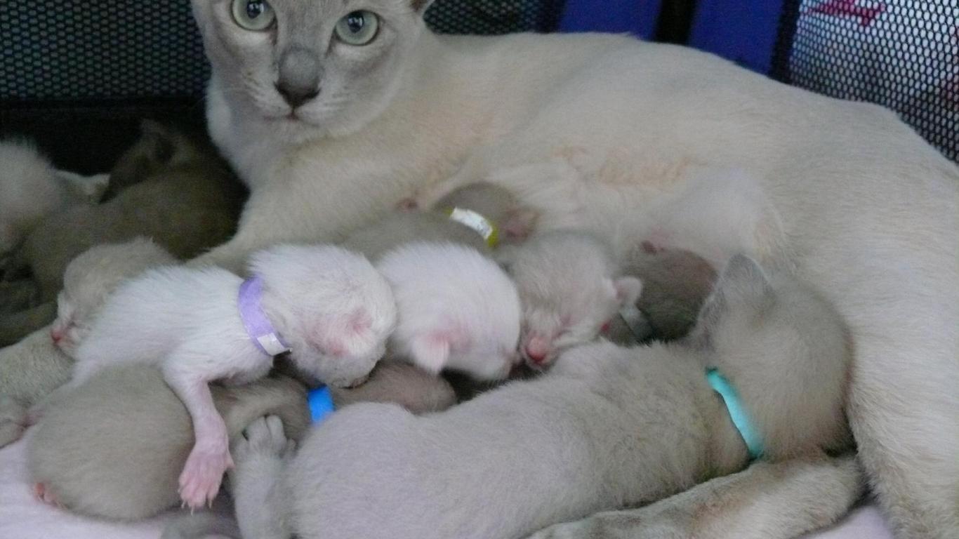» Wallpaper Tonkinese cat with kittens
